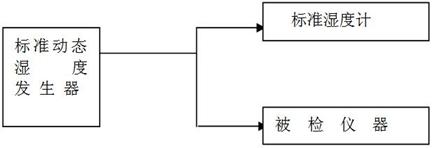 此時,通過露層傳感器冷凝狀態(tài)檢測或觀測裝置,可以判斷露層傳感器上的冷凝物是液態(tài)的露(呈圓或橢圓形)還是固態(tài)的霜(呈晶形)。由一緊貼在露層傳感器下方的鉑電阻溫度傳感器檢測露點溫度。 屬于這類精密的露點儀,主要由三大部分組成: ——高重復(fù)性的露層傳感器伺服機構(gòu); ——準確地測量露層傳感器溫度的溫度測量系統(tǒng); ——判斷0℃以下露點時,露層傳感器上生成的是霜(冰)還是露(過冷卻水)的裝置。 二、范圍 本規(guī)程適用于熱電制冷(鏡面或聲表面波器件)自動檢測露層的平衡式精密露點儀的首次檢定、后續(xù)檢定和使用中檢驗。 三、計量性能要求 3.1 準確度等級 精密露點儀按其最大允許誤差分為一級和二級。 3.2 示值誤差 精密露點儀的示值誤差為儀器測量的平均值Td 與計量檢定值Td’之差,精密露點儀在露點溫度-70℃~+40℃之間的最大允許誤差應(yīng)符合表1中的技術(shù)要求。 表1 準確度等級、最大允許誤差的技術(shù)要求  四、通用技術(shù)要求 4.1 外觀檢查 外殼無明顯銹蝕、碰損之痕跡,銘牌清晰,技術(shù)文件齊全、附件完整,各電纜和接頭的接觸良好。國產(chǎn)的應(yīng)有CMC標志。各功能鍵操作正常,顯示器顯示完整、清晰。 4.2 露點室及傳感器檢查 4.2.1 露點室內(nèi)無微粒、油霧等污染物污染、鏡面無劃痕,所有傳感器件無松動。 4.2.2 采樣氣路清潔、氣密性良好。 4.2.3 熱電制冷器制冷工作正常。 五、計量器具控制 計量器具控制包括:首次檢定、后續(xù)檢定和使用中檢驗。 5.1 檢定條件 5.1.1 環(huán)境溫度 露點測量室和采樣系統(tǒng)的溫度應(yīng)高于待測氣體的露/霜點溫度;當測量的露/霜點溫度高于環(huán)境溫度時,所有測量管路應(yīng)加熱,使其至少高于露/霜點溫度3℃。用自來水或循環(huán)冷卻液來冷卻熱電制冷器的散熱器熱端時,冷卻液的溫度和流量應(yīng)相對恒定。使用風(fēng)冷時,環(huán)境溫度應(yīng)相對恒定。 主機工作的環(huán)境溫度應(yīng)在5℃~35℃之間,有特殊要求者,按其要求確定是否在恒溫條件下檢定。 5.1.2 測量室壓力 當露點測量室出氣端向大氣放空時,露點測量室內(nèi)的壓力等于大氣壓。 當露點測量室內(nèi)樣氣壓力的波動超過200Pa/h 時,不能進行檢定。 當露點測量室內(nèi)樣氣壓力與標準大氣壓(101325Pa)的偏離雖超過±200Pa,但相對穩(wěn)定(波動小于200Pa/h ) 時,可用計算的方法對檢定結(jié)果加以修正(已配備了自動壓力修正系統(tǒng)的儀器除外)。 5.1.3 環(huán)境濕度 主機應(yīng)在10%RH~85%RH之間使用。 5.1.4 電源 按儀器的要求供電,當電源電壓超過額定值的±10%時,應(yīng)采取穩(wěn)壓措施。 5.1.5 檢定用設(shè)備 5.1.5.1 標準器具 使用標準動態(tài)濕度發(fā)生裝置作為檢定用標準器具時,作為檢定用標準器具其露點測量不確定度和被檢露點儀的最大允許誤差之比應(yīng)小于1/3。 5.1.5.2 無5.1.5.1條所述要求的裝置時,由動態(tài)濕度發(fā)生器提供穩(wěn)定濕氣流,使用高準確度的濕度計作為檢定用標準器具。 5.1.5.3 氣路系統(tǒng)的管材 可以使用不銹鋼管、紫銅管或壁厚不小于1mm的聚四氟乙烯管、聚丙烯管作為采樣管。檢定露點溫度在-60℃以下時,應(yīng)采用不銹鋼管,檢定露點溫度在-20℃~+40℃時,可以使用氟橡膠管。不允許使用乳膠管、普通橡膠管和薄壁塑料管。 5.1.5.4 管路的連接方式 可以使用錐型墊密封或硅(氟)橡膠“0”型圈密封的活接頭。如管道有焊接處,應(yīng)認真清洗。用軟質(zhì)材料的管子套接時,應(yīng)內(nèi)襯一段硬質(zhì)材料的管子,并在外面用鋼絲纏緊。 5.1.5.5 放空管 被檢儀器的露點測量室出口放空時,需接一根不短于2m的放空管。 5.1.5.6 流量計 用轉(zhuǎn)子流量計測量樣氣的流量。調(diào)節(jié)氣路的流量,確保樣氣的流量符合露點儀的使用要求。 5.1.5.7 壓力計 用壓力計測量大氣壓,確定測量室的壓力符合露點儀的使用要求。 5.2 檢定項目 表2 檢定項目表  用“+”表示需檢定的項目。 5.2.1 外觀檢查 5.2.1.1 檢查儀器是否受過強烈震動、碰撞、腐蝕等損害;檢查電纜及接頭的接觸處是否清潔、有無松動現(xiàn)象,并用萬用表檢查其接觸是否良好;清點儀器附件及技術(shù)文件是否齊全。 5.2.1.2 打開露點測量室、檢查鏡面、發(fā)光管,接收管或聲表面波器件,如發(fā)現(xiàn)有明顯的鏡面損傷,應(yīng)予以更換。清洗鏡面及發(fā)光管,接收管或聲表面波器件,清洗時使用棉簽沾清洗劑(一般由儀器自配,無自配清洗劑時,可使用無水乙醇)輕輕擦洗,并及時用干棉簽將殘留的清洗劑吸干。注意不要在鏡面上和光學(xué)器件上留下棉花纖維。 5.2.1.3 用棉簽沾無水乙醇清洗接頭各部件,接好氣路后用憋壓的方法檢查氣路的氣密性。 5.2.1.4 接通電源,撳動各按鈕,檢查其運行是否正常。 5.2.2 示值誤差檢定 按5.3 檢定方法對被檢露點儀的示值誤差進行檢定 5.3 檢定方法 5.3.1 使用標準動態(tài)濕度發(fā)生器作為檢定標準時,其擴展不確定度與被檢露點儀的最大允許誤差之比值應(yīng)小于1/3。檢定方法為圖2:  圖2 標準動態(tài)濕度發(fā)生器作為檢定標準的檢定方法 5.3.2 使用高準確度濕度計作為檢定標準時,其擴展不確定度與被檢露點儀的最大允許誤差之比值應(yīng)小于1/3。檢定方法為圖3:  圖3 高準確度濕度計作為檢定標準